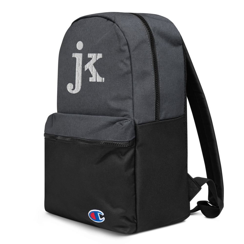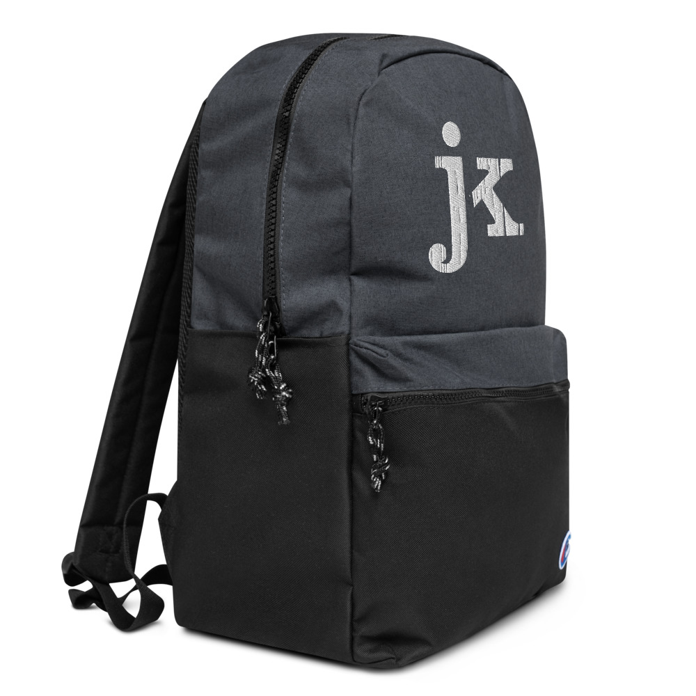 • Padded ergonomic polyester bag straps with plastic strap regulators and Champion brand label on the left strap